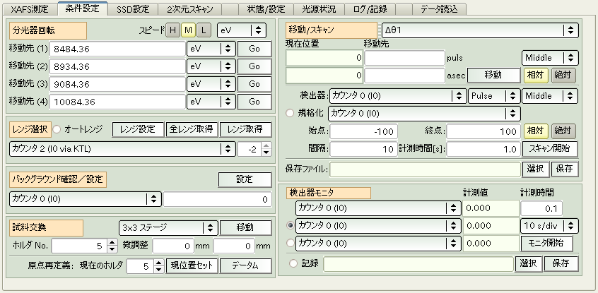 幾つかの予め設定されたエネルギーや、指定したエネルギーに分光器を移動できます。